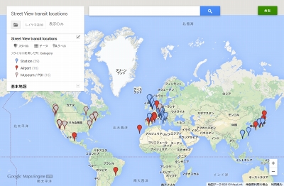 ストリートビューが見られる空港・駅は「マイマップ」としてまとめられており、今のところ空港が16カ所、駅が59カ所ある。この中には香港のケーブルカー駅もある。