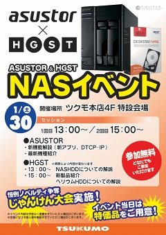 ASUSTOR NAS & HGST製品紹介イベント、1月30日に秋葉原で開催