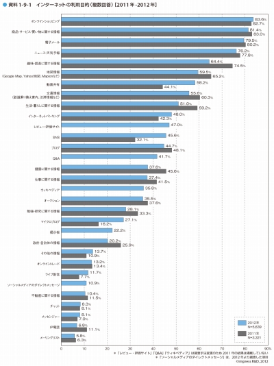 逆に昨年は12.7%を占めていた「検索」が10.3%に減少。「ブログ」も4.3%から2.8%に減少しているのがやや目立つ。
