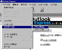 「ファイル」→「エクスポート」→「アドレス帳」(「メッセージ」)を選択します。