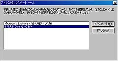 「[アドレス帳エクスポートツール]ダイアログで「CSVフォーマット」を選択し「エクスポート」ボタンを押す。CSVフォーマットは、多くの電子メールや他のアプリケーションでもインポートして使うことができます