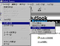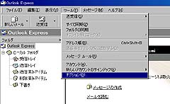まず、メッセージデータのファイルがどこに置かれているかをチェックします。Outlook Express4.0の「ツール」→「オプション」を選択します。