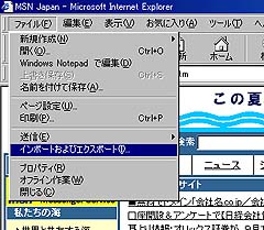 Internet Explorer 5.0のお気に入りを保存するには、Internet Explorerの「ファイル」→「インポートとエクスポート」を選択します。。