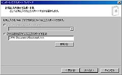 必要とするアカウント(複数あるなら複数回繰り返す)を「エクスポート」ボタンを押して、ディスクに保存する。逆に、Outlook Expressに電子メールアカウントを取り込みたい時は、「インポート」を行います。