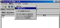 「辞書ツール」の「ツール」→「一覧の出力」を選択し、辞書データをフロッピーディスクやハードディスクに書き出します。