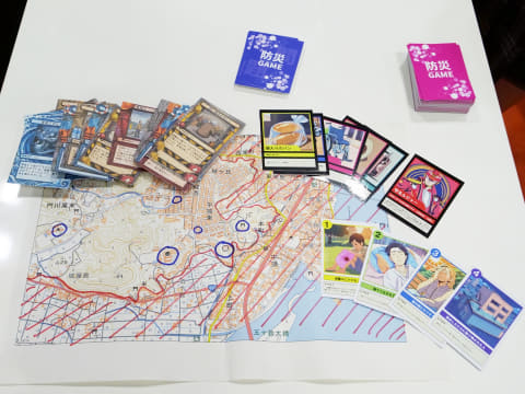 奨励賞は、宮崎県立門川高等学校 地域防災班による「防災カードゲーム『私が来たからもう大丈夫!2』」が受賞した。同作品は昨年のGeoアクティビティコンテストで来場者賞に選ばれたもの。「お腹をすかせた子供」「熱中症になりそうな人」など災害時に起こることが予想されるさまざまな問題に対して、アイテムや人的資源のカードを使って課題解決を目指すゲームで、今年は「高齢者施設編」や「地震津波編」などの新要素を追加した。同ゲームは現在クラウドファンディングで商品化し、近隣の小学校へ配布しているという。