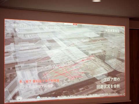 池袋エリアでは、高さ情報をもとに池袋駅構内の人流を階層別に分けることによって路線別の利用者数や年齢層、滞在状況(池袋の街中に滞在/駅ナカのみ/乗り換えのみ)などを分析することが可能となった。また、サンシャイン60展望台「てんぼうパーク」の利用者の3次元人流データを分析したところ、サンシャインシティ館内やサンシャイン60通りなど駅の東側のみ滞在する人が多く、さらに高層階の利用者は地上の回遊に消極的な傾向が見られることも分かり、駅西側やまち全体に興味を持ってもらう“滲み出し”にはまだ伸び代があることが確認できた。