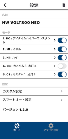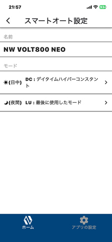 設定はアプリで行い、それぞれのライトで、日中はどのモードに、夜間はどのモードにするのかを事前に設定しておけば、あとは自動で切り替えてくれるワケだ。