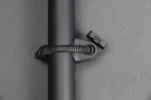 それと個人的にうれしいのが、標準でSP-11 フレックスタイトブラケットが付属すること。同社ではゴムバンドで固定するタイプもあるが、このスクエア形状のコネクターで接続するタイプは、縦にも横にも固定できるし、オプションパーツも豊富で取り付け方の自由度が高いので気に入っている。筆者はフィジークというメーカーのサドルに直接取り付けできるものを持っているので、シートポストではなく、サドルに直接取り付けができる。