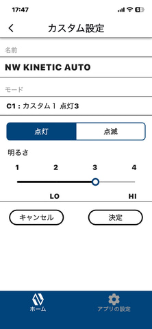 ただ、こちらもアプリの設定でいろいろカスタマイズできる。例えば日中に使いたいデイタイムハイパーフラッシュと、夜間使いたいローの点灯モードの2つにしてしまえば、走行中の操作も簡単になるだろう。