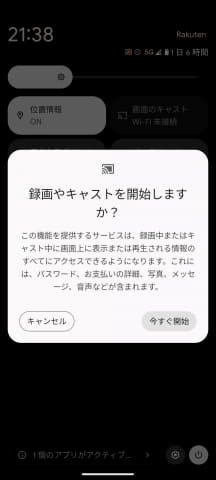 スマホ画面の上からスワイプしてクイック設定パネルを表示させ、[画面のキャスト]をタップし、ミラーリングしたいテレビを選択する。その後、[今すぐ開始]をタップすれば、ミラーリングが開始される。