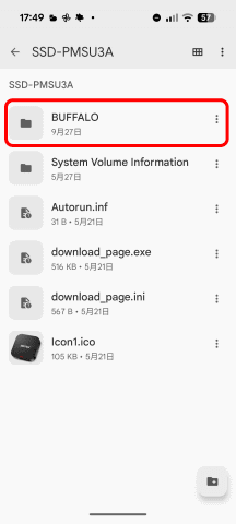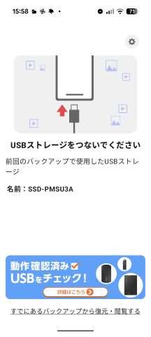 このSSDにはiPhoneの「写真バックアップ」アプリで行ったバックアップも保存されているが、バックアップに使ったSSDを選択する画面で、そちらを選択することはできない。バックアップファイルがなくなったわけではなく、ファイルは分類され残っているので安心してほしい。