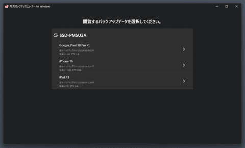 スマホからバックアップした写真をPCで見る「写真バックアップビューアー for Windows」