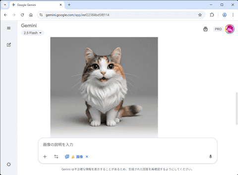 ここからはおまけ。バックアップしてPCにダウンロードした写真で、「Gemini 2.5 Flash Image」(Nano Banana)を使ってフィギュアを作って遊んでみたので、手法を紹介しよう。スマートフォンの「Gemini」アプリでも同じように作成可能だ。ペットの写真からオリジナルフィギュアを作って遊んでみてほしい。チャットでスタンプみたいに活用すると面白い。