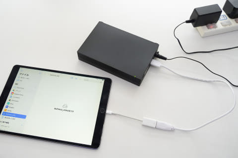 なお、ACアダプターを接続するなどしてUSBポート以外から電源を供給可能な外部ストレージなら、変換アダプターからの電源供給を考える必要がなくなる。その場合は、単純にLightningをUSBに変換するアダプターがあればOKだ。
