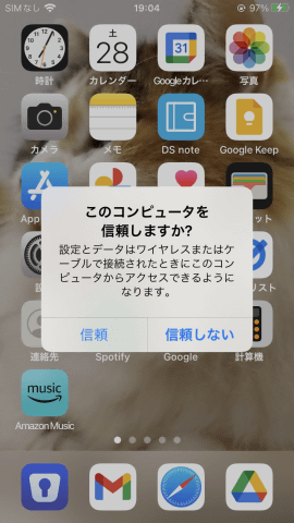 画面の指示に従って、iPhoneとWindows PCをケーブルで接続すると認識して、写真とビデオのアクセス許可と、デバイスを信賴するかの画面が表示される。「Appleデバイス」アプリで[信賴]を選択し、端末でも[信賴]をタップしパスコードで認証すると、接続したiPhoneが画面に表示される。