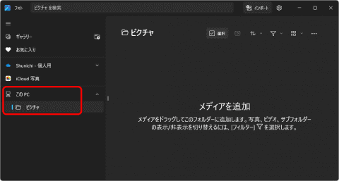 「フォト」アプリに前回のバックアップフォルダーを読み込ませる