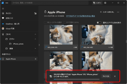 Windows 11の標準アプリ「フォト」でiPhoneの写真と動画をインポートできる