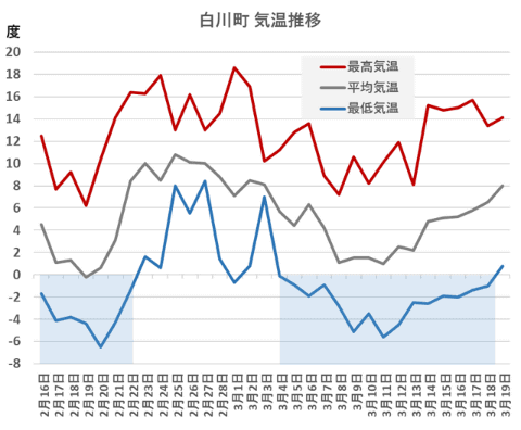 2月下旬、急に暖かくなり「もう灯油は買わなくていいかな?」と思った。2月27日から3日間、東京で撮影の仕事があり、1年ぶりに東京を訪れた際は、薄手の長袖のシャツで過ごせる日があった。白川町に戻ってからも、しばらく暖房を使用しない日が続いたが、3月に入り再び最低気温が氷点下となった。