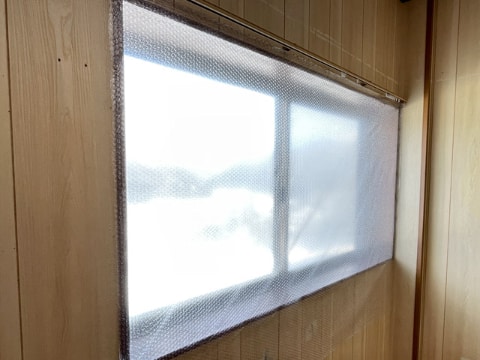 前回の記事では、移住直後にカーテンで広い部屋を仕切り、暖房効率を上げる対策を紹介した。これに加え、昨シーズン・今シーズンとプチプチ(気泡緩衝材)を利用した窓の寒さ対策も行ったので紹介しよう。