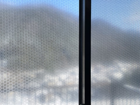 窓の外側にプチプチを貼ると効果は高いが、見た目はよくない。近所の人に「ガラスが割れましたか?」と思われそうだ。筆者は気にしないし、この建物の北側は農地で、その先の建物まで170メートルほど離れているため、気付く人は少ない。「外側プチプチ」、近所の目が気にならない人は来年の冬にお試しいただきたい。