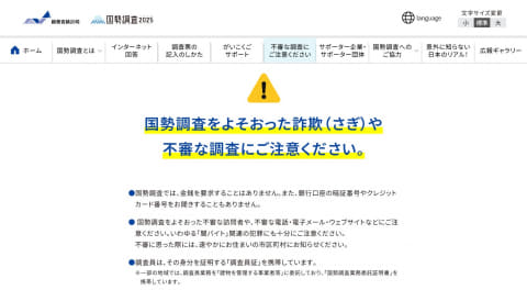 ネットだけでなく、電話をかけてきて、収入などを聞いてくることもあるそうです。「国勢調査に協力しないとブラックリストに載る」や「電話が使えなくなる」などと脅して、聞き出そうとします。もちろん、国勢調査では電話で金銭を要求したり、資産状況を聞き出そうとしたりすることはありません。