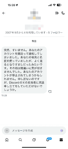 これは焦るかも! ある日「あなたのXアカウントを間違えて通報してしまった」とDMが来た。どうすればいい?