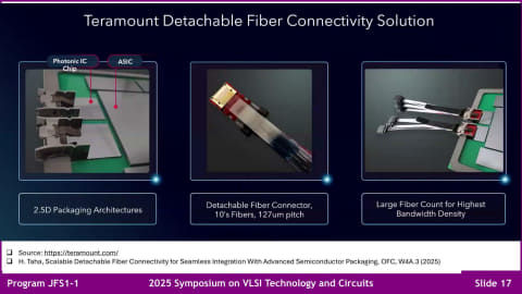 これに関しては、3rd PartyというかFotonixのエコシステムパートナーが提供する、という形に割り切っているらしい。1つの例がTeramountの提供するUniversal Photonic Couplerで、SoCのパッケージから外部にFiberを引き出せるようにするためのものである(図11、図12)。別の例としては、AyarLabsの提供するTeraPHY(図13)があり、多分今後もいくつかソリューションは出てくるだろう(LightmatterのPassageもこれに含まれる)。