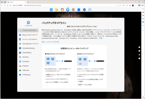 これを適切に使い分けるのは、なかなか難度が高いということで、本製品は設定画面に「バックアップ」というボタンが用意されており、ここから同社がおすすめするバックアップトポロジーを参照したり、バックアップガイドラインで各ツールの使い方をイラスト付きで参照したりできる。