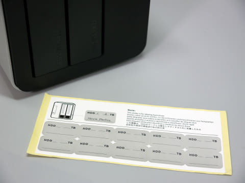 最後に、個人的に面白いと思った点を紹介する。本製品にはHDDトレイに貼り付けるシールが同梱されている。トレイ番号とHDDの容量、用途などを書き込むラベルだ。これが何とも事務用品っぽいというか、90年代の発想というか、味があっていい。日本人には好まれやすいサービスだと思うが、人間味があっていいので、ぜひ続けてほしい。