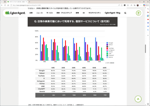 いくつかの調査報告書でも指摘されているが、若年層を中心に検索に生成AI(主にChatGPT)を利用するケースが増えている。