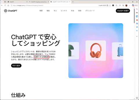 そんな状況の中、2025年11月からChatGPTの機能として「ショッピングアシスタント」が利用可能になった。ショッピング機能自体は、以前から提供されていたが、より使いやすく、進化した機能として改めて利用可能になった。