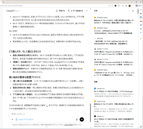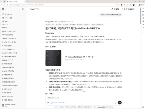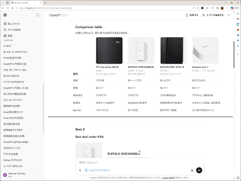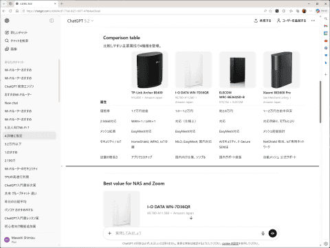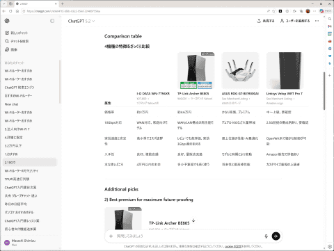 ChatGPTでの検索結果は適切か? ショッピングアシスタントでWi-Fiルーターのおすすめを聞いてみた