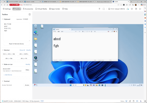 ただ、気になったのはクリップボード機能だ。本製品には、操作するPC上で入力した文字列をクリップボード経由でリモートPCに貼り付ける機能が搭載されているのだが、この機能が現状不安定だ。