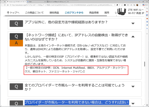 前述した回線自動判別機能やスマートフォンアプリも、欲を言えばさらなる改善を求めたい。筆者宅のASAHIネットの自動判定もできなかったので、今回も手動設定したが、Amazon.co.jpの販売ページ下部のQA項目には、以下のような記載がある。
