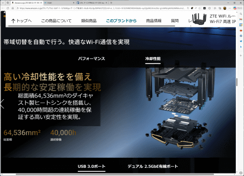 その後、記事を執筆・制作して一旦完成していたのだが、記事の公開前に、ZTE側でいくつかの見直しが行われた。具体的には、Amazon.co.jpに掲載されている情報が修正されており、2.4GHz帯の最大通信速度が「1440Mbps」から「1376Mbps」に、「高出力FEM」が「高性能FEM」になっている。今回の記事は、これらの修正が行わる前の情報に基づくものとしてお読みいただきたい。