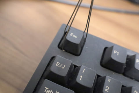 キープラーは、コの字型に曲げられたワイヤー2本が柄に付いているもので、2本のワイヤーをキーの対角となる角と角に引っかけて引っ張り上げることで、キーキャップを取り外すことができるというもの。キーキャップはプラスチックでできているため、キープラーのワイヤーで傷を付けないように注意する必要があったり、力任せにキーキャップを外すことでキーボードを壊さないように注意する必要があったりと、気を遣うことが多い作業だ。