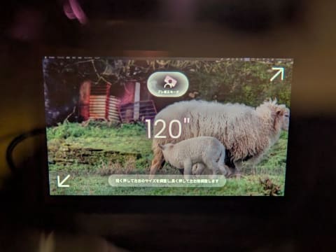 Oneの場合、2〜10mの範囲で設定できるのですが、距離によって指定できる画面の大きさが異なります。たとえば、2mと設定した場合は52〜84インチの間、10mと設定した場合は258〜419インチ、という具合です。
