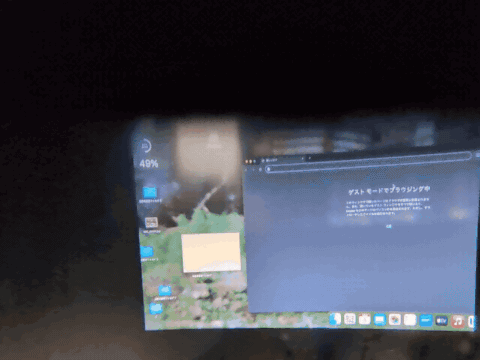 ただ、One Proは視野角が大きいことによって、XREAL内の画面が若干湾曲しているように見えます。具体的には、画面中央にかけて細くなっているのですが、画面四隅が外側に引き伸ばされているみたいに歪んでいる感じです。一方、Oneの画面は比較的まっすぐに見えます。ほかの方のレビューではデメリットとしてあげられている部分であり、確かにそのように見えたのですが、個人的にはほとんど気になりませんでした。
