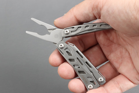 ROXON M3が開くとハサミが出てきたのに対してこちらはペンチが出てくる。NexTool Mini Flagshipもしっかりとしたペンチが付いていたが、比べるとこちらのほうがさらに本格的なペンチで、根本にはワイヤーカッターも付いている。