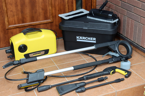 まず高圧洗浄機だが、筆者が選んだのは「K 2 サイレント」だ。ケルヒャーの高圧洗浄機というと「K 3 サイレント プラス」や「K 4 プレミアム サイレント」のようなキャリーハンドルとタイヤが付いたモデルが思い浮かぶだろうが、あえてそれではないタイプにしたかった。