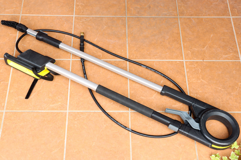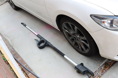 なにかいい方法はないかなー、と調べていると、ケルヒャーの高圧洗浄機にはオプションで長い延長パイプがあるのを発見。これ良いなー、と思ったのだが、筆者が使っているのは違うメーカーの高圧洗浄機なのでつけられず。