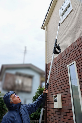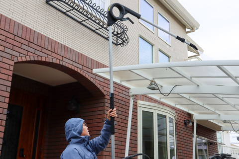 ただし、さすがに3.7mは長い。重量としては大人であれば片手で持てる重さだが、最大まで伸ばすとバランスを保つのが結構大変だ。さらに噴射をするとその反動で先端が持って行かれるので、それを押さえ込むための力も使う。2階の全部の窓を終える頃には、普段使わない筋肉を使って、結構疲労感がたまっていた。成人男性であれば問題無いだろうが、女性だと、できなくはないだろうが人によっては苦労しそうだ。