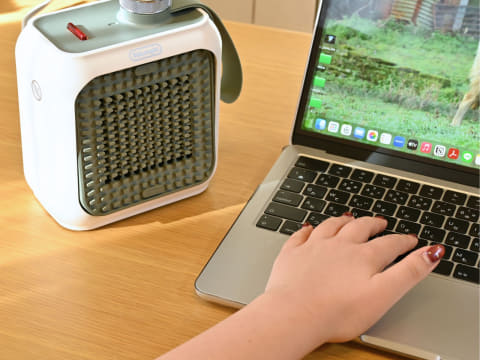 ですが、手先が冷たいせいでキーボード操作が億劫になるのはどうにかしたいもの……。そんな中、机の上にもおけるという、デロンギの超小型ヒーター「デロンギ カプスーラ デスク セラミックファンヒーター」を発見。手の周りの空気をしっかり温めておけば冷えが気にならなくなるのかもしれない。そう思って早速取り入れてみることにしました。