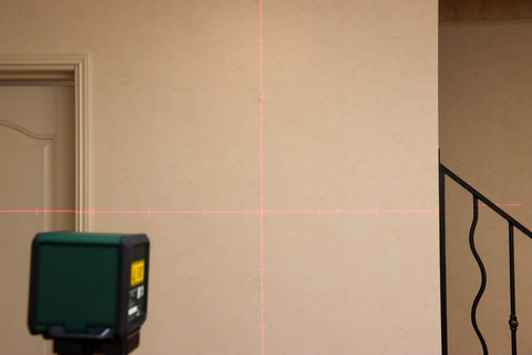 それが「レーザー墨出し器」と呼ばれるもので、レーザー光で壁などに直線を映し出せる。しかもそのラインは自動で水平・垂直にできるので、レーザーの線に合わせてカレンダーや額縁の角度を合わせれば、真っ直ぐに取り付けることができるというわけだ。