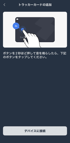 まずSwitchBotアプリへの登録だが、アプリを立ち上げて右上の「+」アイコンをタップ。「デバイスの追加」からスマートトラッカーカードのアイコンをタップしたら、あとはアプリの指示に従えばOKだ。