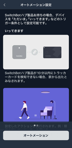 また、このカードと同社のハブを連携させて、ハブとスマートトラッカーが接続していない状況から接続した状況になる、あるいはハブが10分以上検知できない場合に、それぞれなにかアクションを設定することができる。例えば外出したら電気を全てオフにするとか、逆に帰宅したら照明やエアコンをつける、ということができる。ただ家族全員がカードを持つなどしないと、ちょっと使いどころが思いつかない。