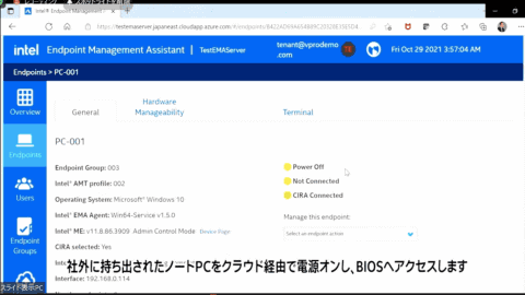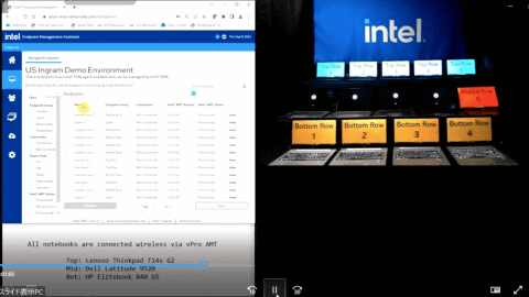 最後に、インテル株式会社 佐近清志氏から、BIOSの起動・操作、OSの回復オプションを遠隔操作してリカバリするなど、vProの注目機能についての紹介を行ってミーティングは終了した。
