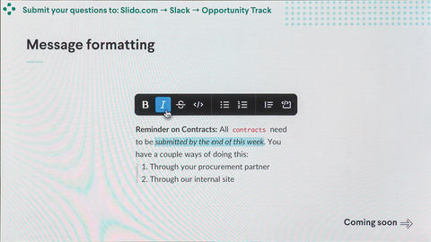 EKMは昨年のFrontiersで開発意向表明が行なわれた機能で、暗号化鍵を企業側が持ち、データのコントロールを自由に行なうことができる機能だ。今回は具体的なデモが行なわれ、すでに利用しているチャンネルを、暗号化鍵を利用して暗号化を行ない、特定のユーザーに対して見えないようにする様子などが公開された。「こうした機能は、政府、軍隊、セキュリティ企業などが必要としている」とのことで、その具体的なユーザー例として、金融事業を行なっているLAZARDが導入したことを明らかにした。フランク氏は「EKMは今日から一般提供を開始する」と述べ、エンタープライズ版を契約しているユーザーが今日からEKMを利用できるようになったと説明した。