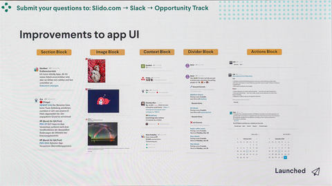 また、検索機能の強化(近日中に投入)、メッセージの表示方法の変更(近日中に投入)、アプリのUIの改善(すでに導入済み)、昨日の記事で紹介したワークフロービルダー(近日投入)などが紹介された。